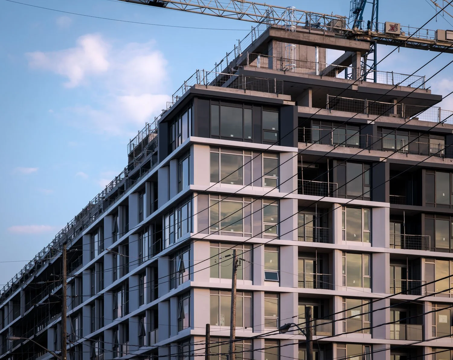 Exterior work-in-progress architectural photographs of The Dylan Condos by Chestnut Hill Developments. It’s always a unique challenge to make compelling architectural photographs of projects still under construction. You have limited access, often no clear perspectives and a plethora of eye-grabbing distractions. With this set, I leveraged the light to provide a clearer direction for the eye to follow. By separating light and shadow and focusing on strong composition, I am able to create a sense of flow in an otherwise visually chaotic scene. The Dylan is set for completion in 2024.